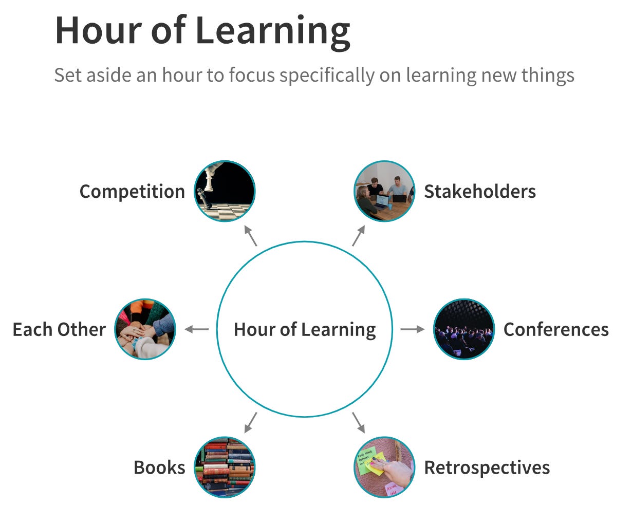 And “hour of learning” is an effective way to establish a learning culture by ensuring your product team continues to learn by setting aside an hour to focus specifically on learning new things - and a technique I explore in People-First Product Leadership. An “hour of learning” can happen once a week, every other week or once a month. Less than once a month and learning will not be infused into your product team’s culture.